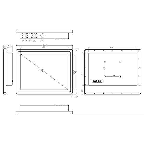 2. 15'' Industrial LCD panel, 1000 nits. sunlight readable.